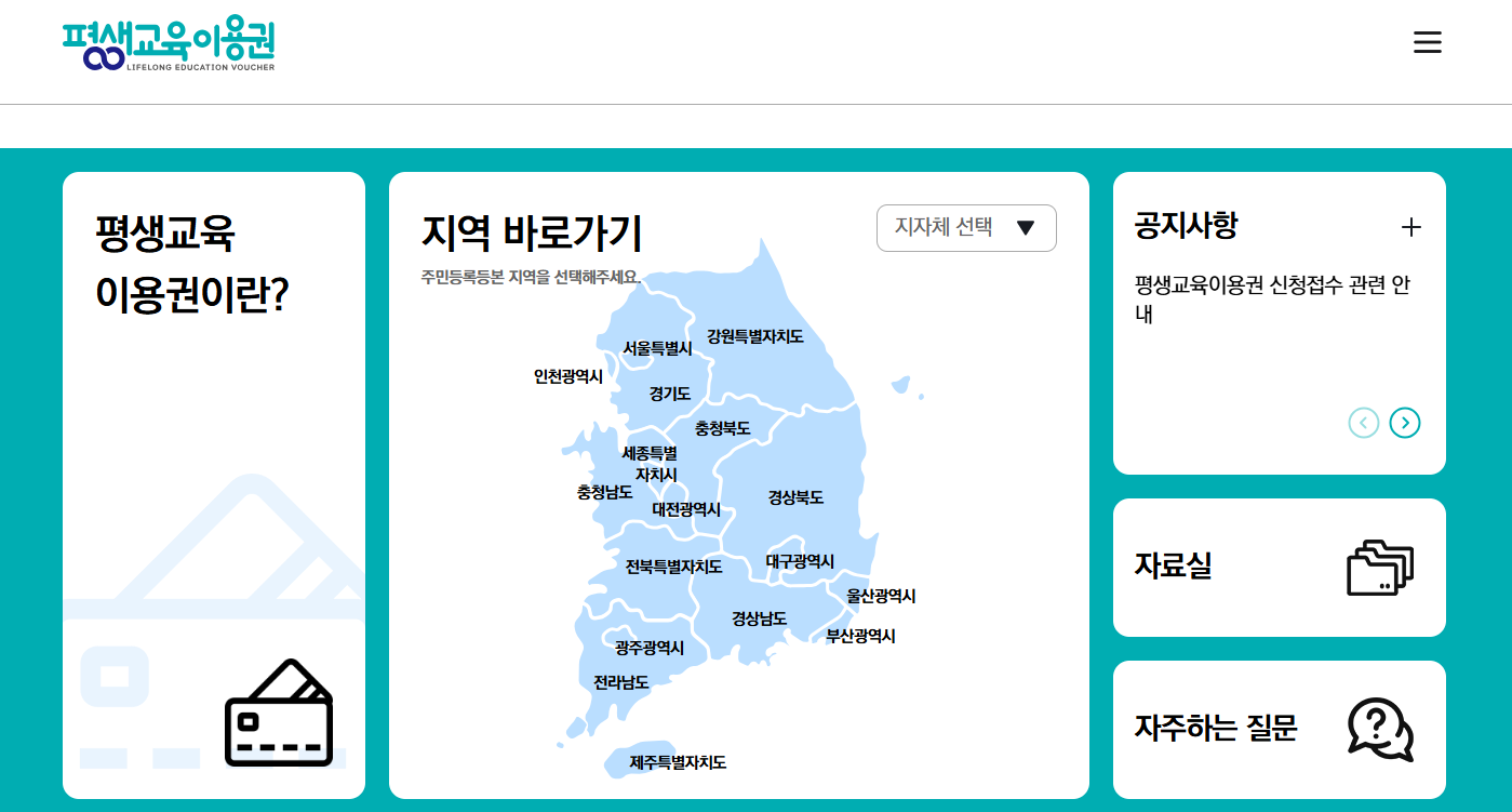 - 전국 평생교육이용권 사용기관 및 강좌 검색 가능