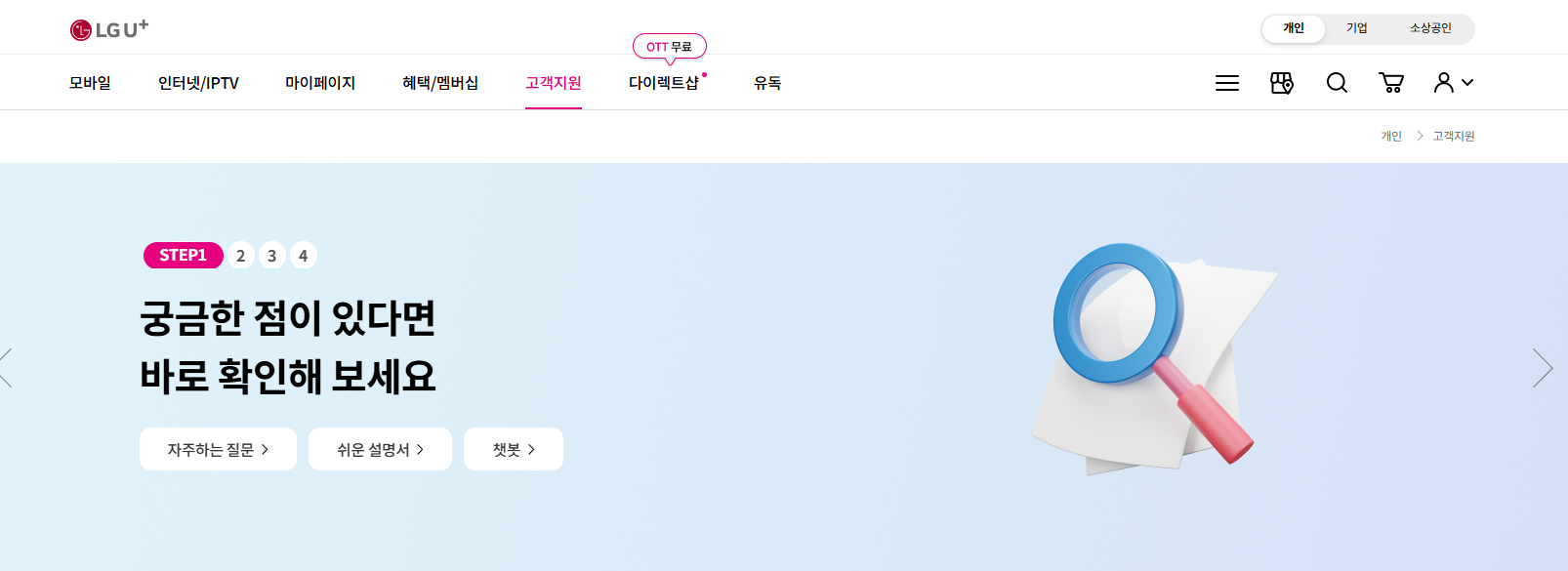 - 해외에서 유플러스 고객센터 이용 가능 (로밍 시 무료)