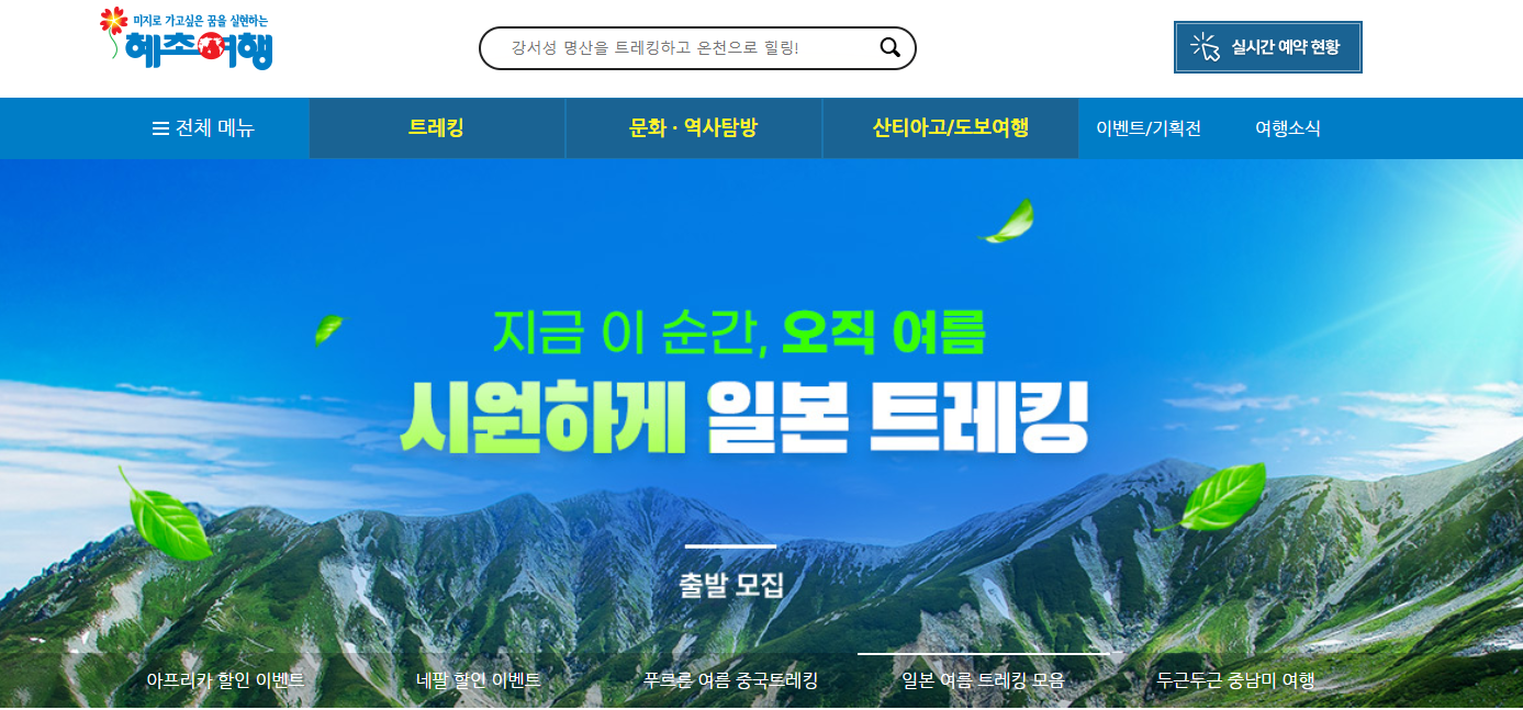 혜초여행사 홈페이지에서 가장 눈에 띄는 기능 중 하나는