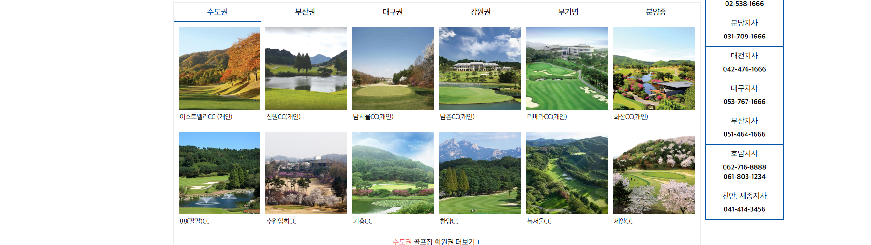 홈페이지 첫 화면에서 전국 주요 골프장, 콘도, 휘트니스 회원권의 시세를 확인할 수 있습니다.